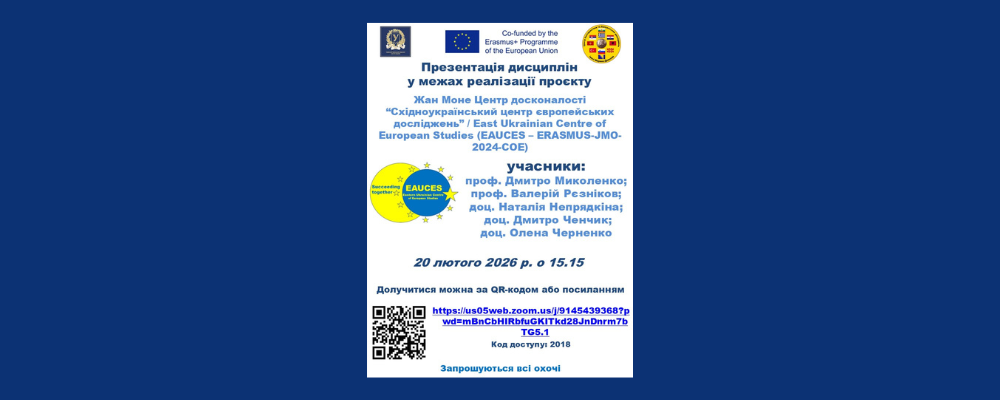 Презентація дисциплін у межах реалізації проєкту Еразмус+ Центр досконалості «Східноукраїнський центр європейських досліджень»
