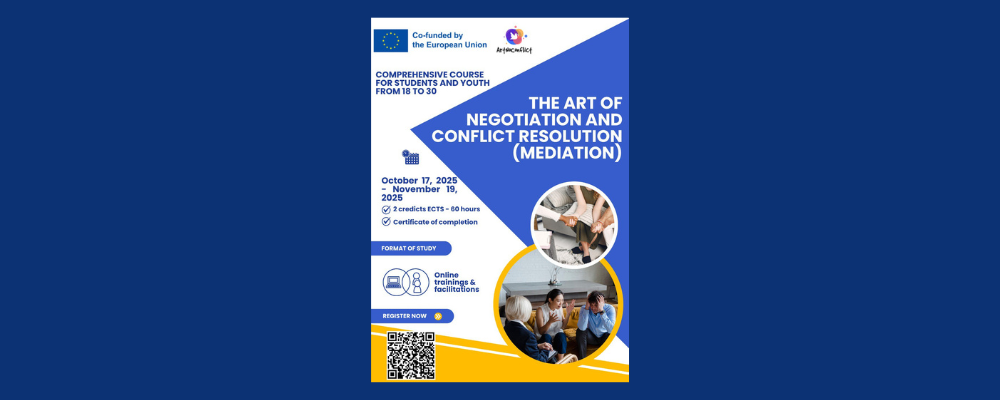 Цей курс надасть студентам і молодим людям, які не навчаються, доступ до нового рівня міжнародної, міжкультурної та інклюзивної освіти шляхом впровадження віртуальних обмінів у сфері мистецтва переговорів і медіації в країнах ЄС, Грузії та Україні для зміцнення демократії, культурного розмаїття та об’єктивного розв’язання проблем шляхом набуття найкращих європейських практик. Це саме ті навички, які необхідні кожній сучасній людині в усьому світі.