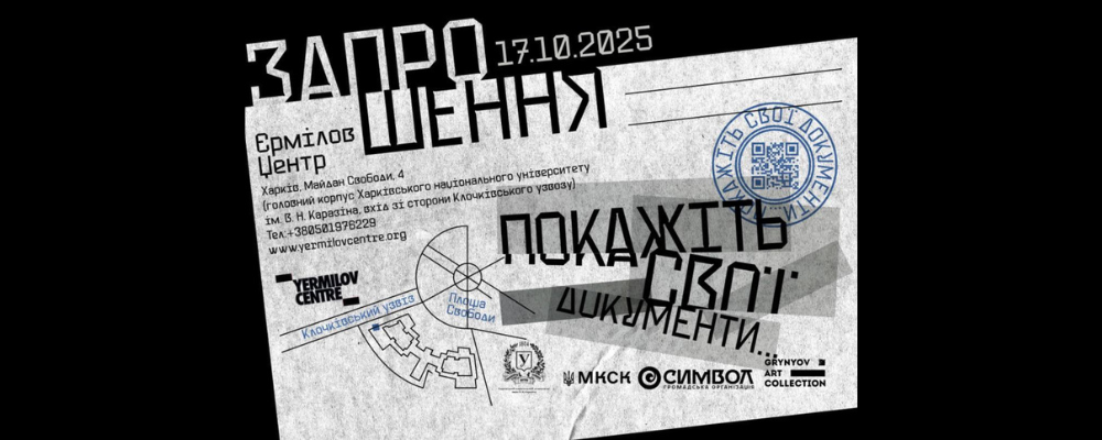 17 жовтня о 18:00 у ЄрміловЦентрі Каразінського університету відкривається виставка «Покажіть свої документи...» — перший проєкт молодих кураторів Петра Чекаля та Юрія Рассохи.