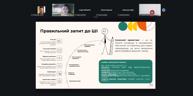 The speaker of the event was Maksym Valin, an expert in the digital transformation of education and the implementation of AI technologies in research. The central highlight of the training was the presentation of the University’s Policy on the Use of AI. This document defines ethical boundaries and regulatory requirements for working with AI tools, ensuring adherence to the principles of academic integrity. Participants discussed how to integrate AI into their work so that it remains a reliable assistant rather than a tool for misuse.