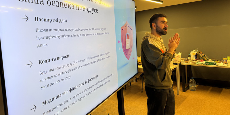 The trainers also explained the principles behind recommendation algorithms used by popular online services such as YouTube and Netflix, as well as the use of chatbots for obtaining reference information and user support. In addition, examples of AI applications in government digital services, including the Diia and Diia.Education platforms, were presented and their potential for learning and professional activities was discussed.