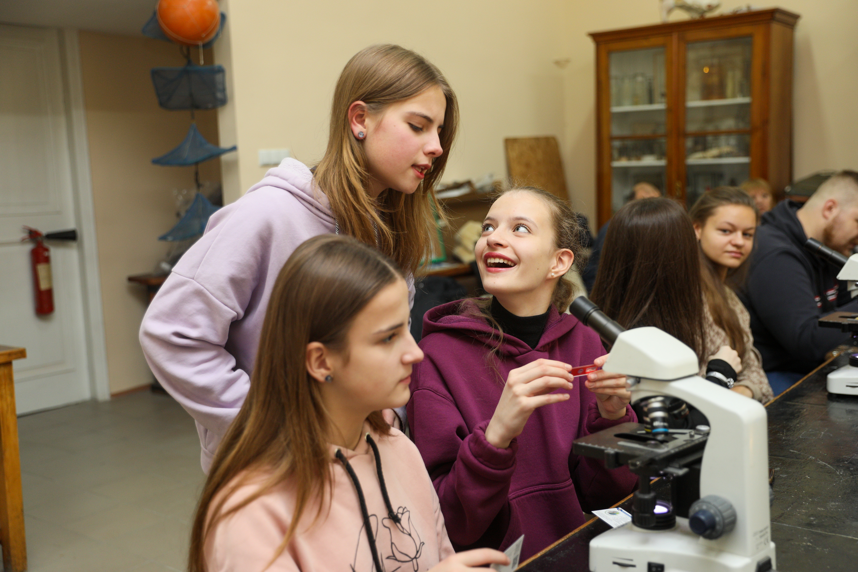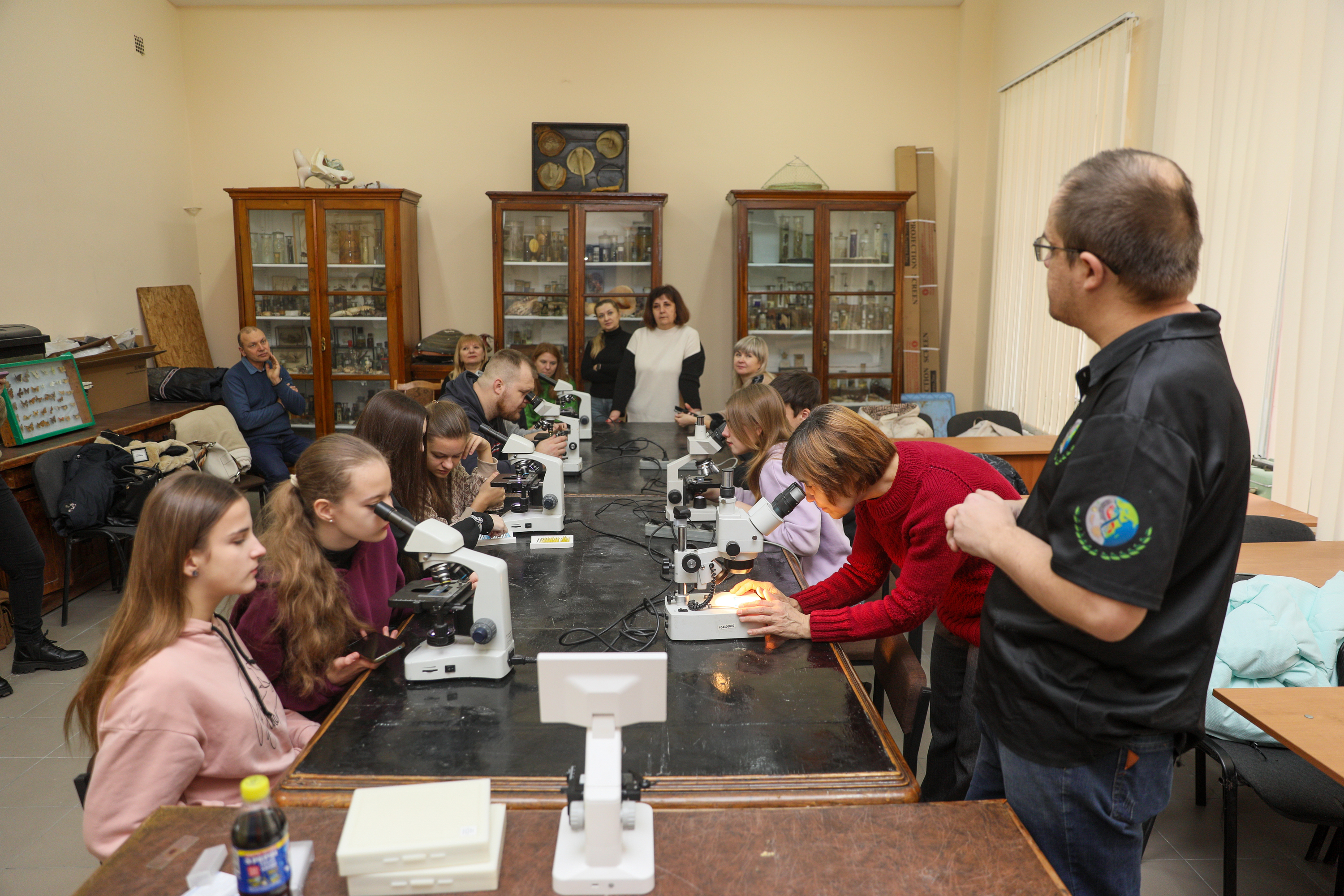 Під час роботи ліцеїстів і вчителів Харківського академічного ліцею № 9 Харківської обласної ради в сучасних лабораторіях кафедри зоології та екології тварин біологічного факультету тьютор Сергій Сідоровський ознайомив з основами філогенетики, залучив їх до практичного використання електронних мікроскопів з метою виконання запропонованих завдань. Присутні мали можливість побачити різноманітні експонати тварин, безхребетних, мешканців водоймищ, що містяться в експозиційних відділеннях кафедри, долучитися до тренінгу з імітаційного моделювання в популяційній біології завдяки сучасним інноваційним приладам, досягненням генетики. Ліцеїстам запропонували перспективні варіанти для вступу на бакалавріат кафедр біологічного факультету, ознайомили з варіантами подальшого працевлаштування після здобуття вищої освіти.
