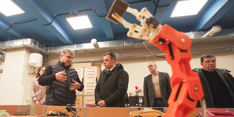Під час робочої поїздки заступнику Міністра було продемонстровано комплекс лабораторій інтелектуальних систем навчально-наукового інституту комп’ютерних наук та штучного інтелекту. Навчання тут відбувається у безпечних просторах, що відповідають вимогам до протирадіаційного укриття. Такий простір дає можливість перебувати у безпеці під час освітнього процесу навіть в умовах війни. Зараз, на цій локації триває ремонт приміщень площею 2,5 тисячі кв.м. з протирадіаційним укриттям. Особлива увага тут приділяється безперешкодному доступу для маломобільних груп населення. Хід робіт заступник Міністра оглянув особисто.