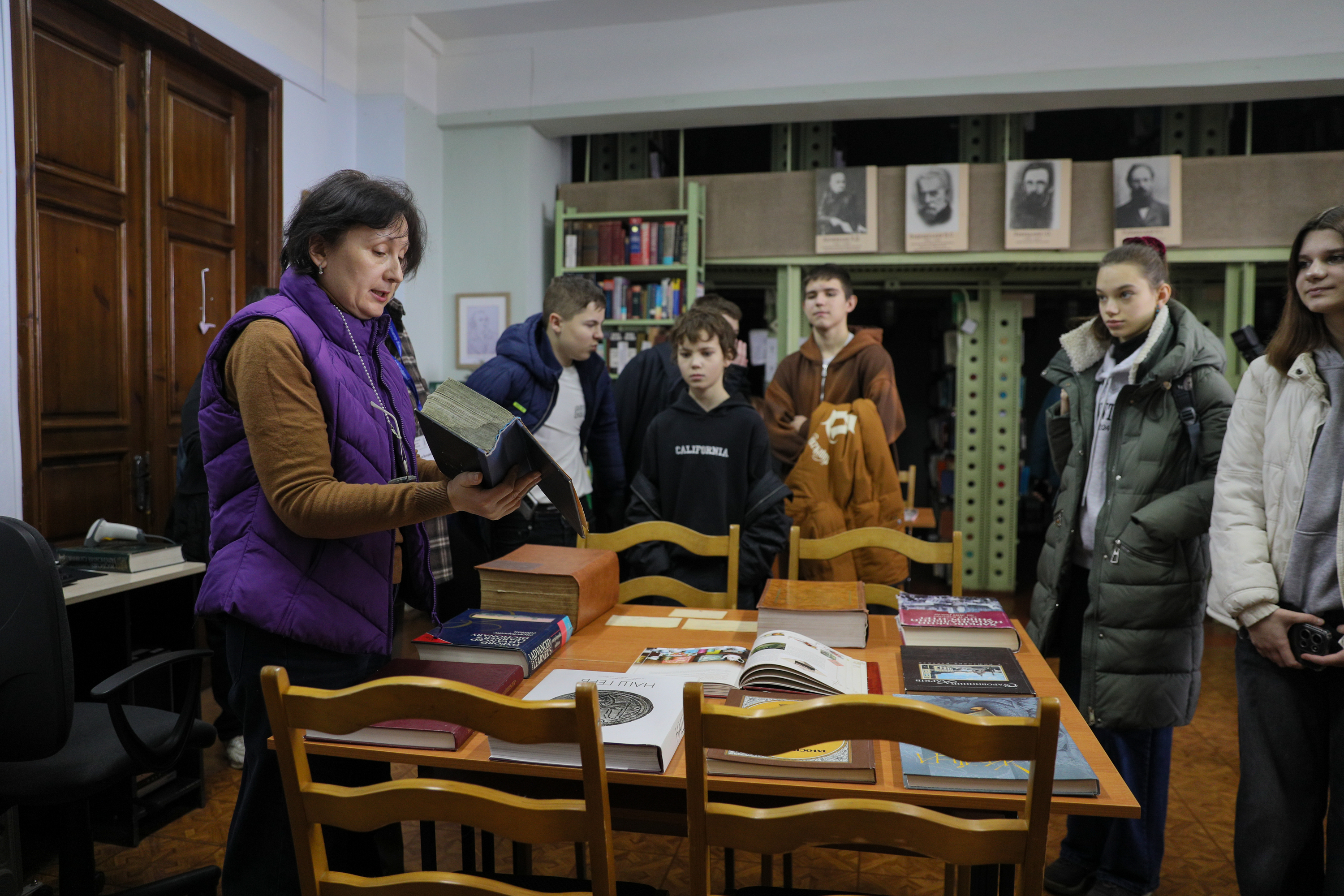 Під час роботи бібліотечного майданчика заступник директора Центральної наукової бібліотеки Катерина Лискова та співробітники бібліотеки провели практичні заняття з учасниками заходу на базі відділу міжкультурної комунікації та проєктної діяльності, відділу цифрових ресурсів, програмного і комп’ютерного забезпечення та диджиталізації фондів, відділу абонентів, науково-бібліографічного відділу.