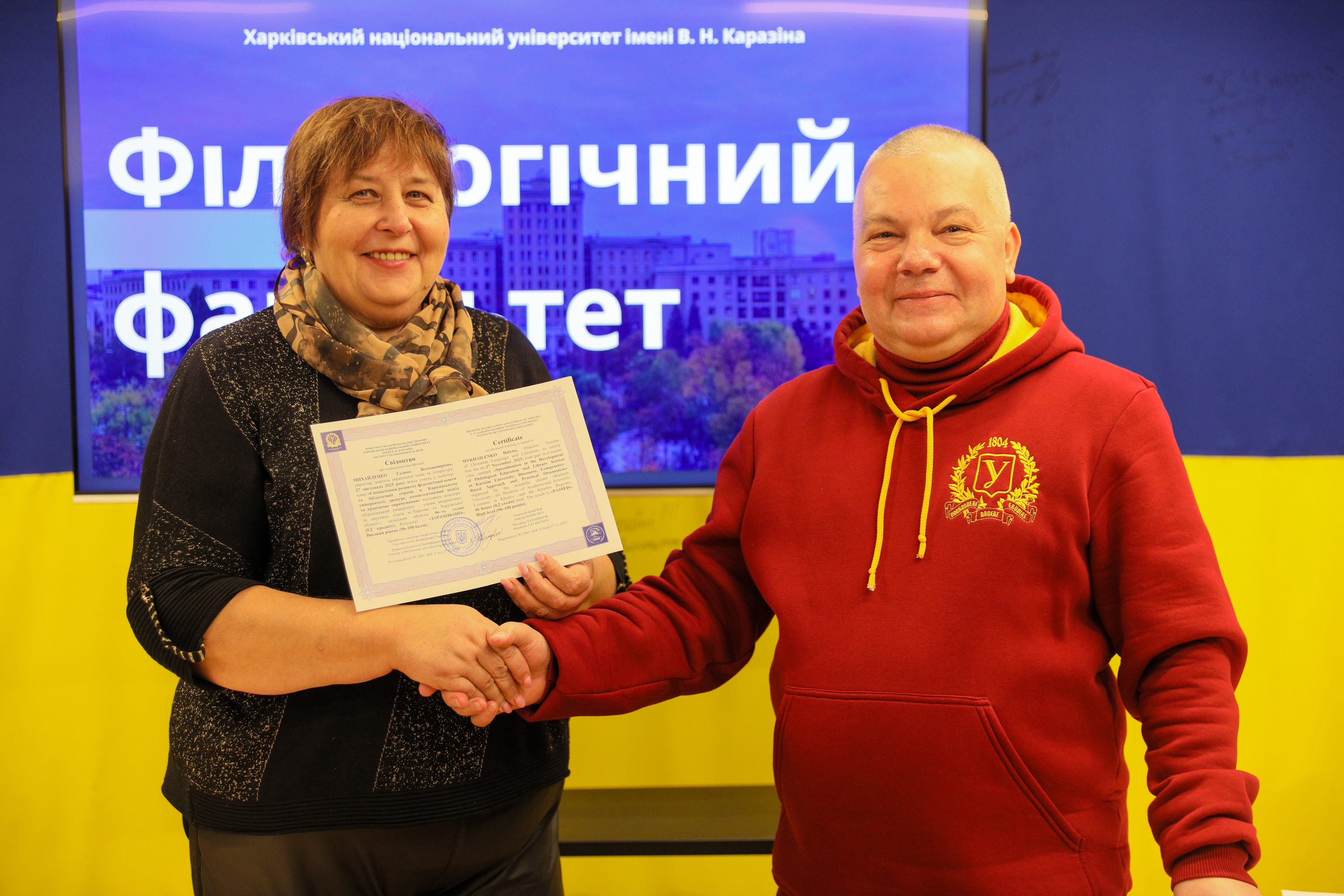 27 листопада 2025 року в межах реалізації пріоритетних завдань договору про співробітництво між Каразінським університетом та Комунальним закладом «Харківський академічний ліцей "ІНТЕЛ 13"» Харківської обласної ради, Інститутом безперервної освіти, Центральною науковою бібліотекою та філологічним факультетом проведено майстер-клас «Спеціалізація розвитку філологічної освіти та бібліотечної справи в Каразінському університеті: дискурс, компетентнісний підхід та практичне спрямування» для учнів 7–10 класів і вчителів англійської мови, української мови та української літератури, бібліотекаря, адміністрації ліцею.