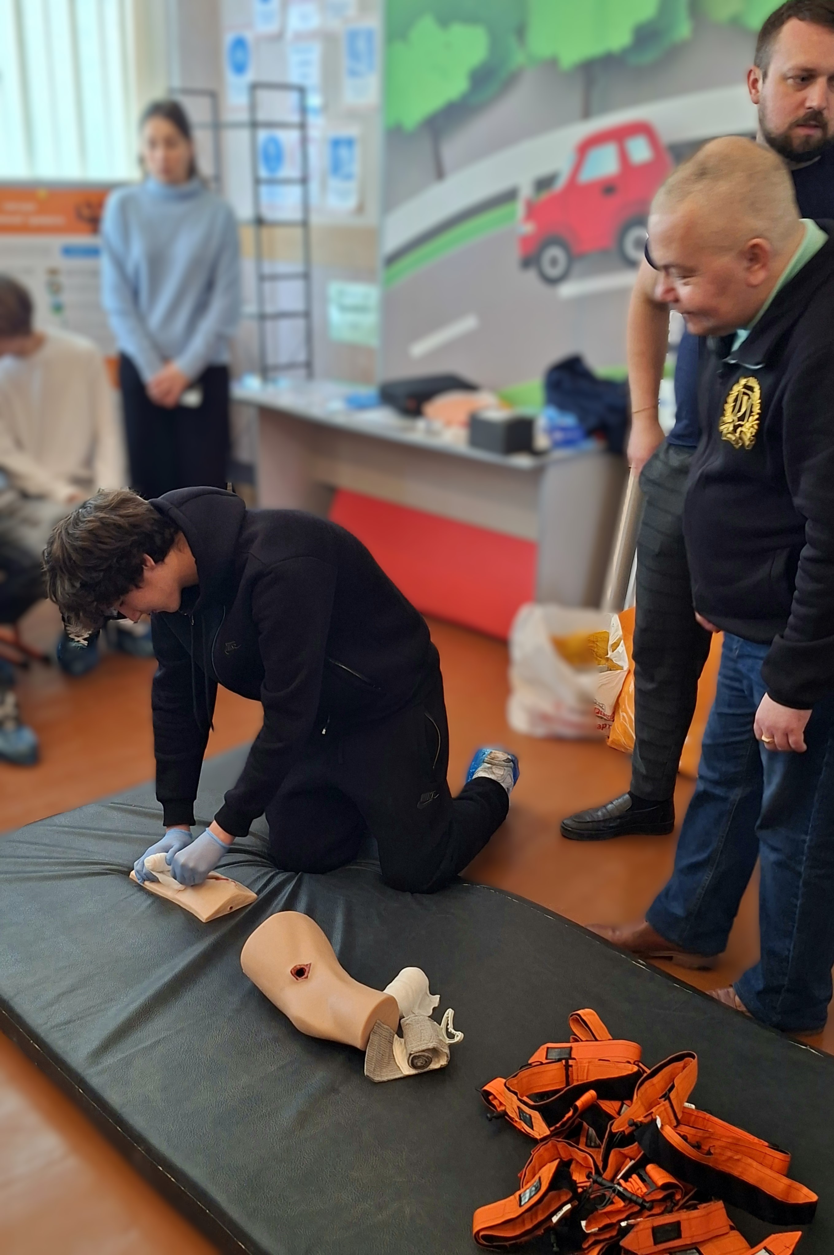 Практична робота Івана Рудаса з ліцеїстами передбачала інформаційно-пізнавальний контент та проведення триетапного тренінгу для зупинки різних типів кровотечі. Учні вчилися визначати критичні кровотечі, одне одному накладали турнікети, розпізнавали тип кровотечі, виконували вправи з тампонування місць кровотечі. За результатами кожного з етапів зупинки кровотечі Іван Рудас звертав увагу старшокласників на типові недоліки, що виникали у них під час зупинки критичних кровотеч з урахуванням обмеженого часу для надання первинної домедичної допомоги.