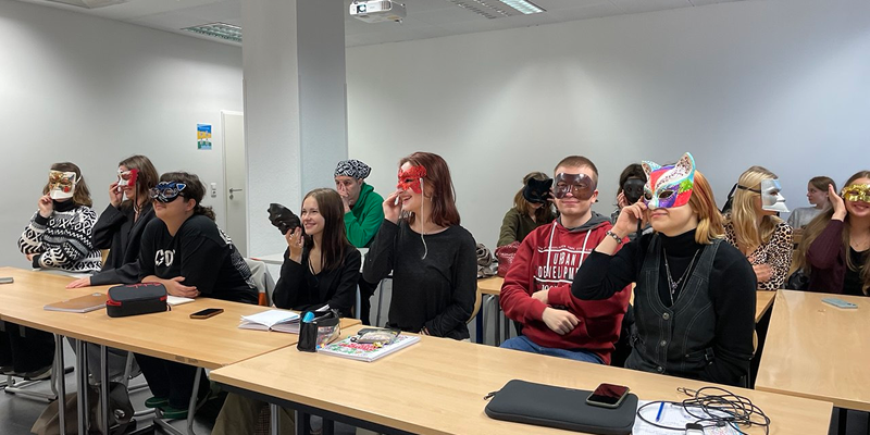 Родзинкою зустрічі стала інтерактивна частина: студенти приміряли автентичні венеціанські маски 🎭, відчувши на собі ефект театрального перевтілення!